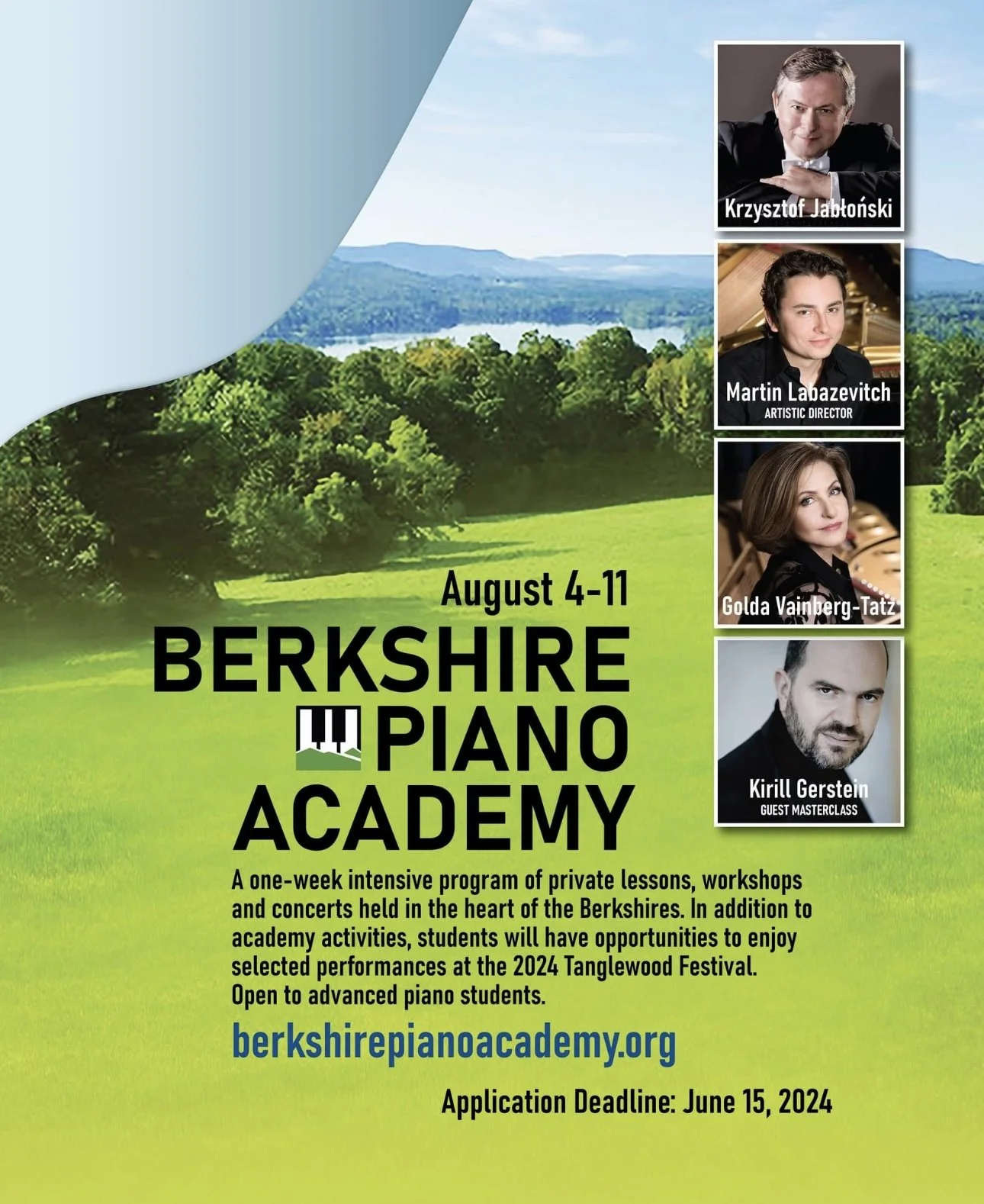 Each summer, Berkshire Piano Academy provides intensive music education and performance opportunities in the Berkshires of Western Massachusetts for advanced pianists of all ages. BPA faculty welcome participants from around the world, selected through application, for a week-long intensive under the guidance of world-class teachers and performers.